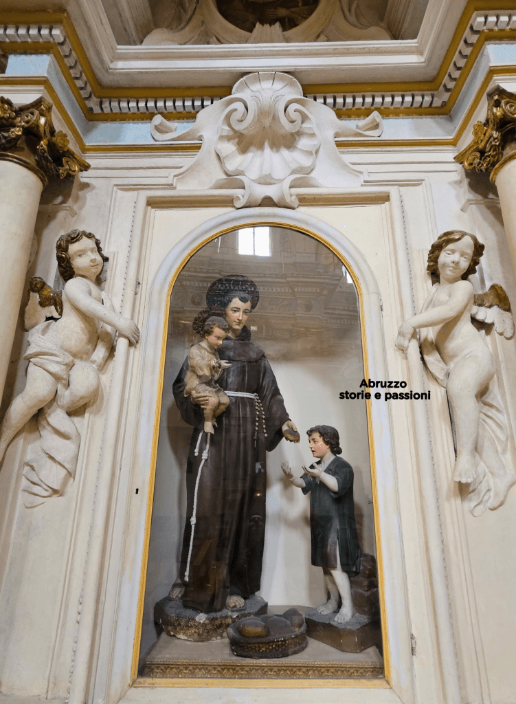 Il secondo altare è dedicato a Sant’Antonio di Padova: in alto due angeli sorreggono lo stemma dei Valignani, mentre al centro si trova la statua del santo affiancata da due tele raffiguranti l’Estasi di Santa Chiara e Gesù Bambino con Maria ed Elisabetta.