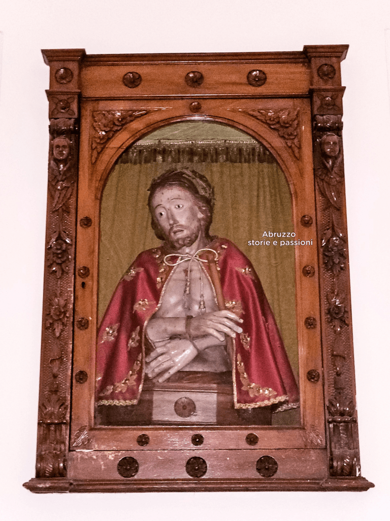 Al Settecento risale anche il delicato busto ligneo del Cristo Hecce Homo, posizionato in una piccola nicchia vicino al primo altare di destra dedicato a Sant’Ignazio, nella tela raffigurato in estasi con a fianco San Francesco Saverio, opera di Severino Galanti (1793). La nicchia, così come quella gemella sul lato opposto, fu realizzata negli anni Sessanta del Novecento, in occasione di alcuni lavori di restauro di discutibile qualità, che comportarono la sostituzione di alcuni dipinti (oggi depositati nel Museo Diocesano di Chieti, ormai chiuso da tempo) con statue.