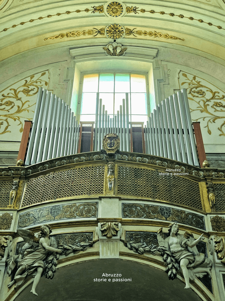 L’organo settecentesco in legno intagliato e dorato è opera dell’abruzzese Adriano Fedri (Atri, 1727 – 1797), abile artigiano e costruttore di organi, appartenente alla famiglia di organisti Fedeli-Fedri, originari delle Marche, e autore anche dell’organo monumentale della Basilica di San Bernardino a L’Aquila. Fu donato alla chiesa dalla famiglia Celaja, duchi di Canosa, come attesta lo stemma.